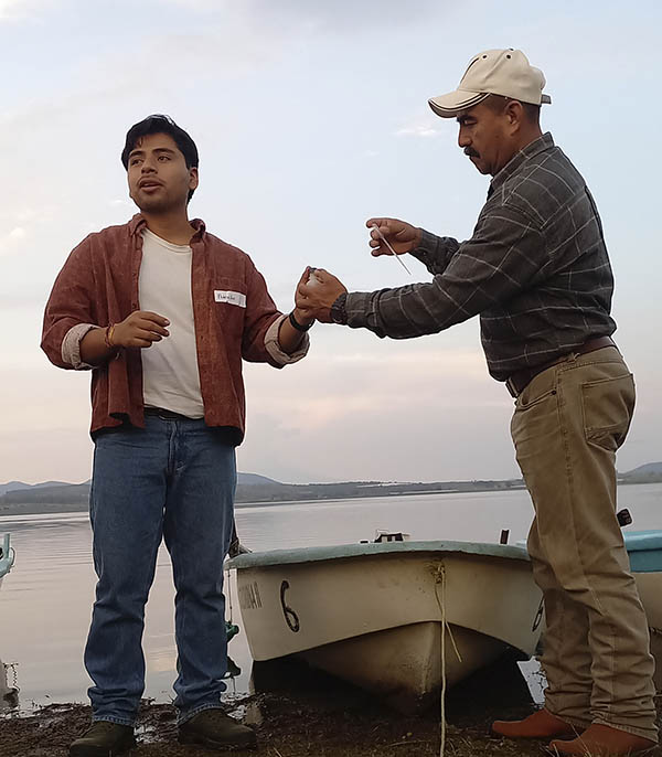 La respuesta vendría en 2023, cuando el ITESO se acercó a Global Water Watch —un organismo que se dedica a monitorear cuerpos de agua y a capacitar comunidades— para, junto con la Ibero Ciudad de México, comenzar a trabajar en la zona. “Nos acercamos a los pescadores con la propuesta de formar monitores comunitarios de la calidad del agua. Estos aceptaron y se convocó a más personas de las comunidades donde estábamos trabajando. Hicimos dos talleres y acudieron personas de Zacoalco, Atotonilco el Bajo, El Refugio, San Antonio Mazatepec y, por supuesto, la gente de Valencia”, dice el académico, y agrega que se tenía contacto con todas estas comunidades gracias al trabajo que se ha venido realizando desde el Proyecto de Aplicación Profesional (PAP) San Pedro Valencia.